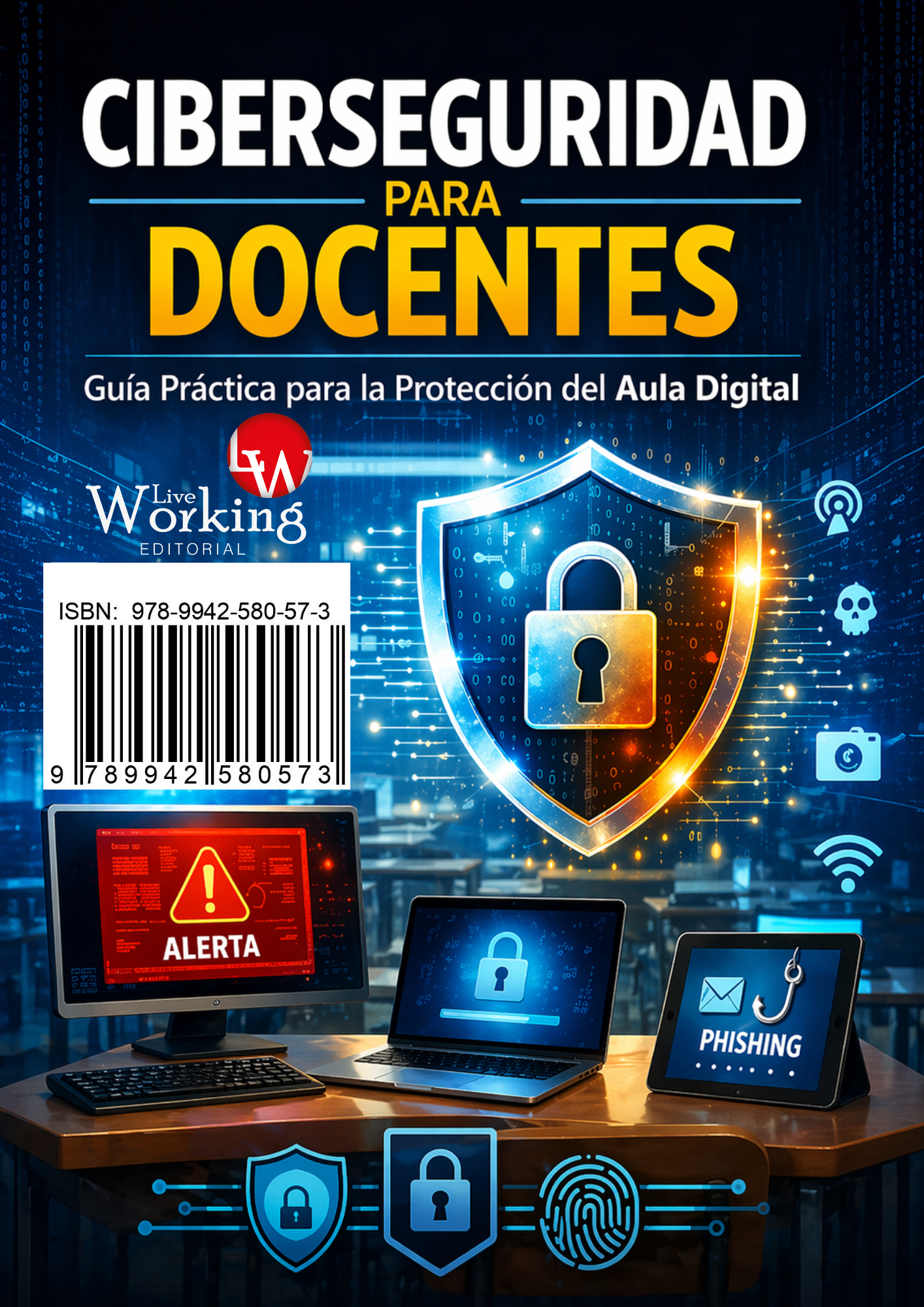 El presente libro, titulado “Ciberseguridad para docentes: Guía práctica para la protección del aula digital”, tiene como propósito proporcionar un marco integral que permita a los educadores comprender, identificar y mitigar los principales riesgos de seguridad en entornos educativos digitales. A diferencia de los enfoques exclusivamente técnicos, esta obra adopta una perspectiva pedagógica aplicada, orientada a traducir conceptos complejos de ciberseguridad en estrategias prácticas y accesibles para el contexto docente.
